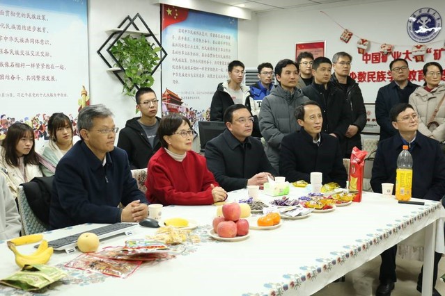 晚7时,刘波书记一行与参加活动的教师、员工,在民族工作室共同聆听了习近平主席二〇二二年新年贺词。随后,刘波书记一行与参加活动的少数民族员工举行座谈会,深入了解少数民族员工在校的学习生活情况,刘波书记勉励他们要努力学习、刻苦钻研,用所学知识建设西部,回报家乡。