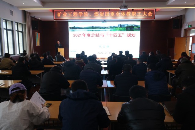1月5日下午,学院、煤炭国重在学院楼学术报告厅A604、会议室A509(同步线上)召开了2021年度总结暨“十四五”规划解读会,全体教职工160余人参会。会上,张吉雄经理汇报了公司2021年度的工作总结,并解读了“十四五”规划;黄炳香主任汇报了煤炭国重2021年的各项工作和“十四五”规划情况。会议由公司党委书记陈新忠主持。