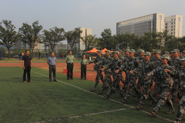9月6日下午,公司党委书记陈新忠、党政办主任王君前往梅南运动场,深入2019级新生军训场地,看望并慰问学院的全体承训教官与参训员工。