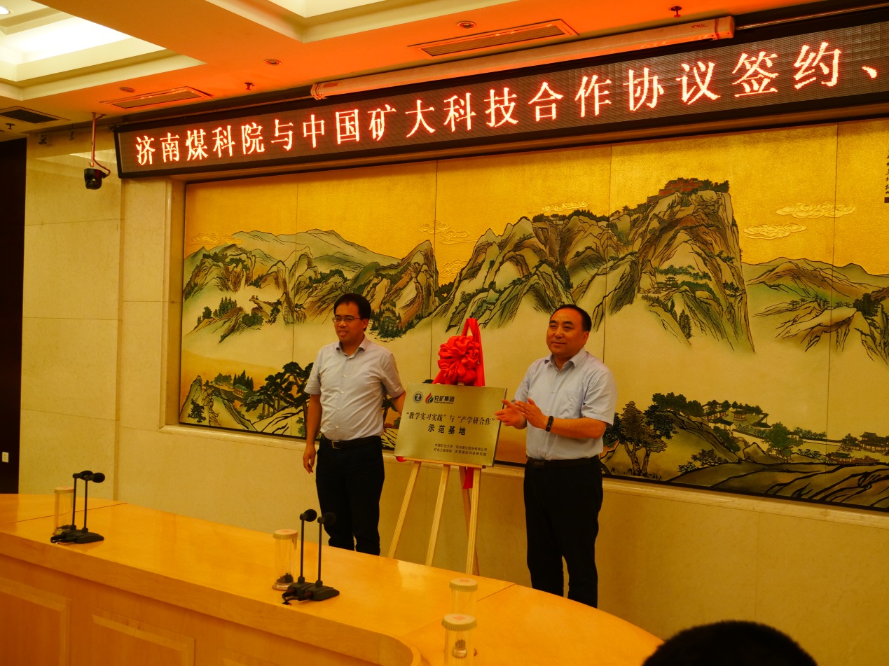6月28日上午,公司与兖州煤业济南煤炭科技研究院在兖矿集团举行“教学实习实践”与“产学研合作”示范基地签约仪式。WilliamHill官网副董事长周福宝、兖矿集团总工程师孟祥军共同为示范基地揭牌。英国威廉希尔公司经理张吉雄、兖州煤业济南煤炭科技研究院经理高维强签订合作协议。