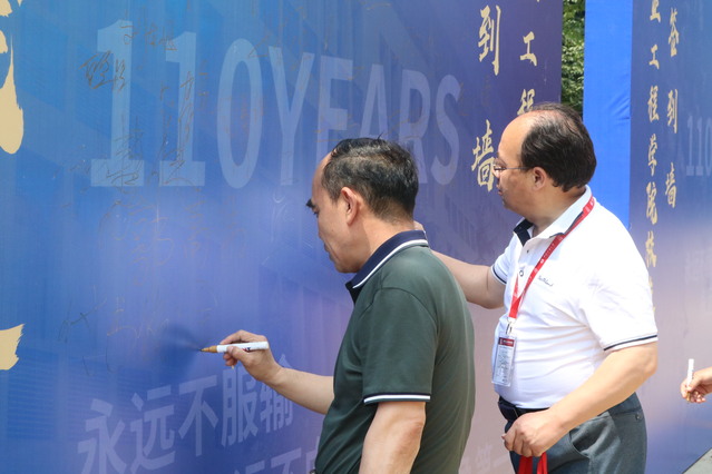座谈会前,员工们先后到学院楼前的签名墙一起合影留念,参加了庆祝学校建校110周年文艺晚会和创新发展大会。座谈会后,员工们和学院全体院领导、教师代表在矿业学院楼门前共同合影留念。