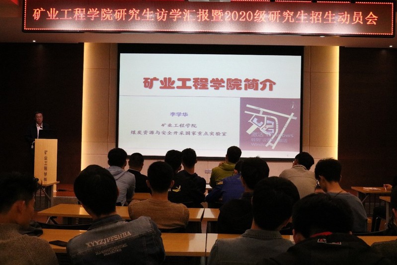 4月23日晚,矿业学院在A604报告厅举办研究生海外访学汇报会暨2020级研究生招生动员会。矿业学院科研、研究生副经理李学华,16级辅导员刘刚领和学院60余名16级同学参加了会议。