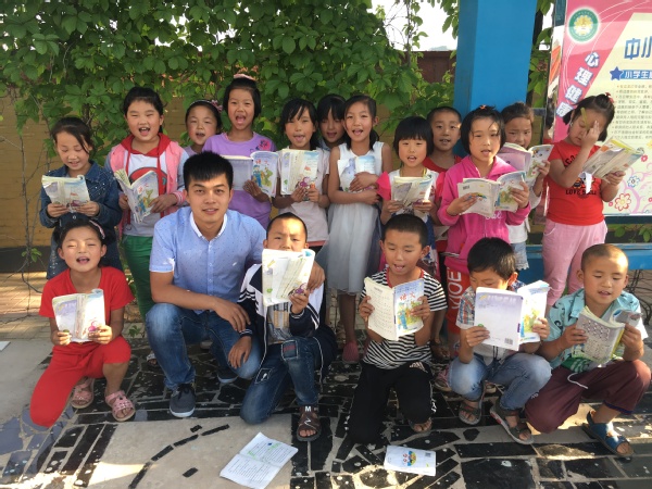 姚文浩与石家田九年制学校孩子在一起