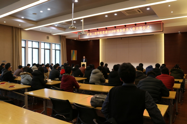 12月25日,矿业公司党委在矿业楼A604报告厅举行新党员入党宣誓活动。公司党委副书记畅军亮、学院专职组织员潘晓龙、各员工党支部书记、2018年新发展的员工党员参加了此次活动。活动由员工党员工作站指导老师、2016级辅导员刘刚领主持。