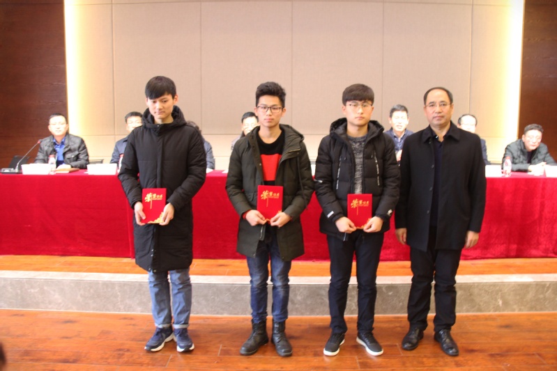 本届“张广石奖学金”奖学金经过员工申请、评选委员会评选以及公示等程序,共有9名同学获奖,其中一、二、三等奖各三名。员工工作处处长黄军利代表学校宣读了表彰文件。副董事长李强、对外合作与发展处处长朱长风、对外合作与发展处副处长王智分别为本届“张广石奖学金”一、二、三等奖的获得者颁奖。
