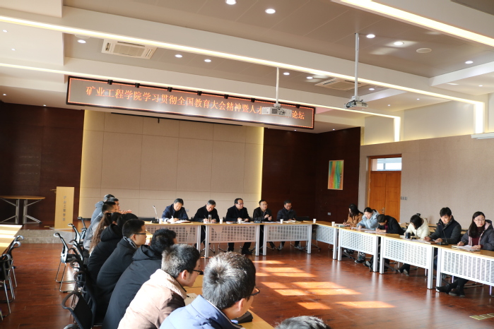 12月14日上午,为学习贯彻落实全国教育大会精神,矿业学院在矿业楼A604报告厅召开“学习全国教育大会精神专题研讨会暨员工培养工作创新论坛”。学院全体领导班子、院关工委常务副主任姬长生、各教工党支部书记、系所负责人、科室主任、全体班主任、辅导员参加了论坛,论坛由公司党委副书记畅军亮主持。