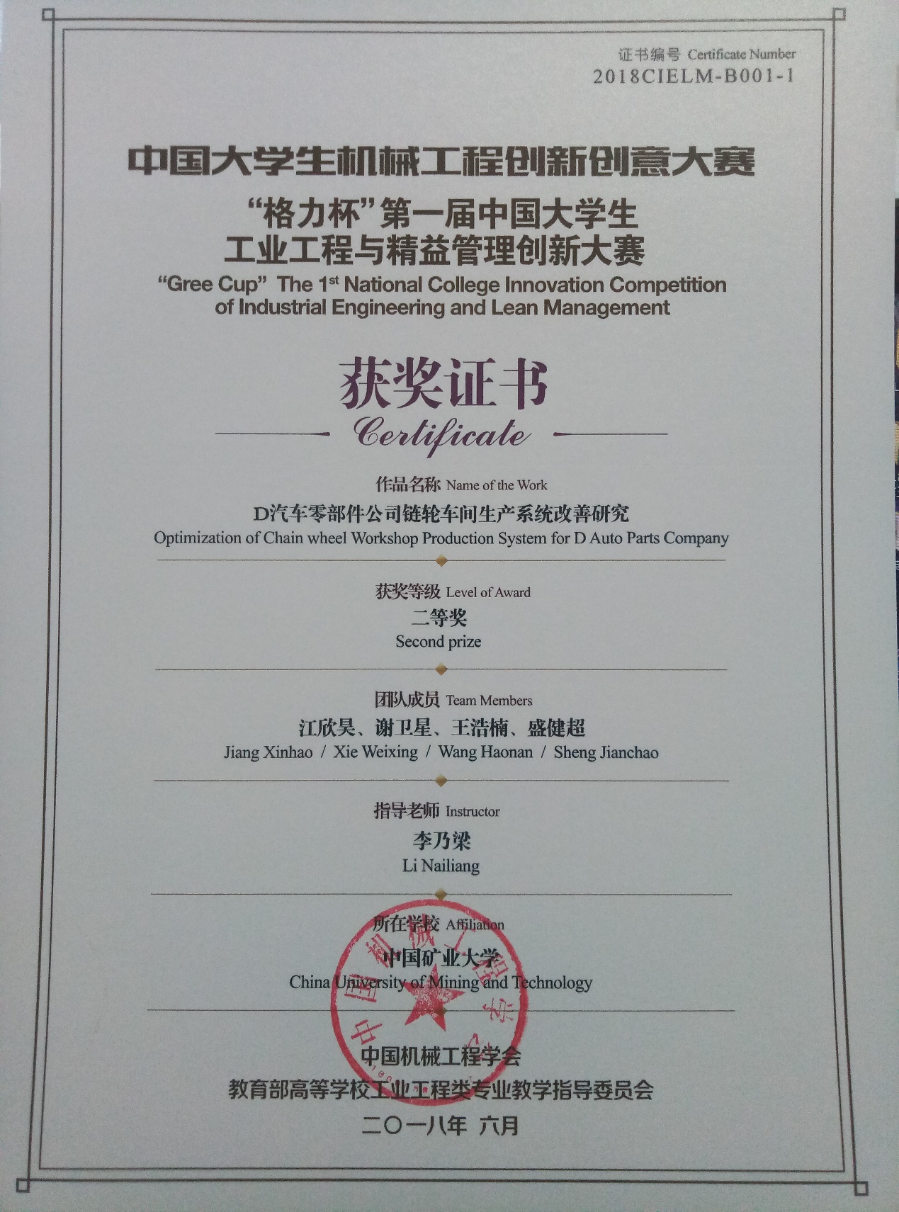 中国老员工工业工程与精益管理创新大赛是“中国老员工机械工程创新创意大赛”的系列专业大赛之一,由中国机械工程学会和教育部高等学校工业工程类专业教学指导委员会联合主办,中国机械工程学会工业工程分会和珠海格力电器股份有限公司联合承办的比赛。初赛中共有来自北京大学、天津大学、上海交通大学、四川大学、哈尔滨工业大学、华中科技大学等100所高校组成的415支参赛队参加。经资格审查和初赛专家组评审,最终北京大学、上海交通大学、天津大学、华中科技大学、南京航空航天大学、西南科技大学、四川大学、WilliamHill官网等34支参赛队入围总决赛,并有116支参赛队获优秀奖。