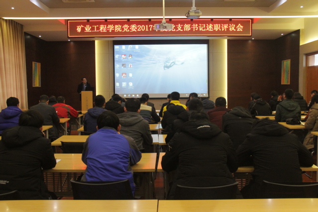 采矿系党支部姚强岭、科研平台党支部王旭锋、工业工程党支部吴锋锋、交通运输党支部苑红伟、露天研究所党支部舒继森、机关党支部潘晓龙、研究生硕16-3党支部王召同及本科2015级党支部叶壮分别作为各支部代表依次进行了述职汇报。他们分别结合各支部实际情况,围绕“两学一做”常态化制度化实施情况、“三会一课”和党员活动日制度落实情况、党员教育管理情况、党支部问题查摆整改情况、党支部的创新做法以及存在不足及改进措施等方面做了精彩全面的汇报,在汇报了各自党支部本年度履职尽责、落实整改任务情况的同时,并介绍了本支部党建的工作成果,查摆问题和不足,也提出了今后的努力方向。