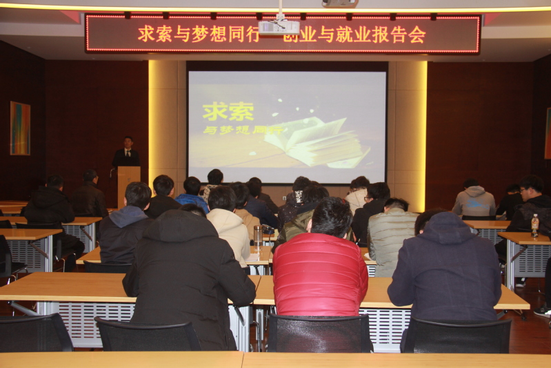 12月12日,矿业学院在学院楼A604报告厅举行了“求索与梦想同行”创业与就业主题报告会,徐州国家安全科技产业园总经理姚强为报告人。本次报告由苑红伟老师主持,全体交通运输本科14级同学听取报告。