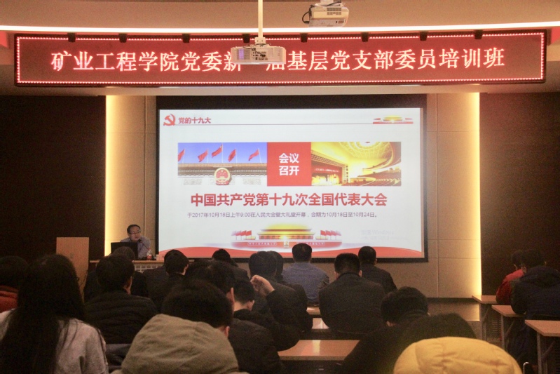 12月28-29日,矿业公司党委新一届基层党支部委员培训班在学院楼A604开讲。培训班特邀公司党委统战部部长刘静丽、矿业公司党委书记陈新忠、公司党委宣传部副部长刘尊旭以及党校办公室主任马文彬为全体师生党支部委员上课,培训班由矿业公司党委副书记畅军亮主持。