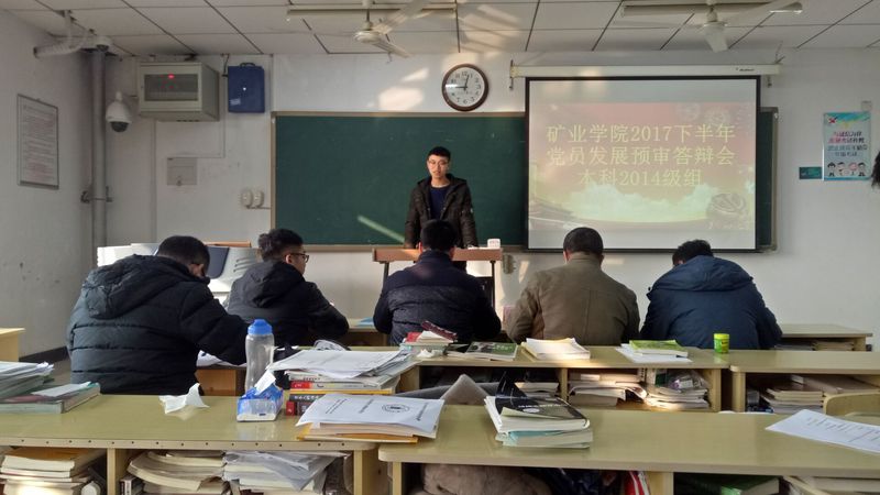 12月1日,矿业公司党委在博学4楼举行了2017下半年党员发展(转正)预审答辩会。答辩评委由公司党委书记陈新忠、副书记畅军亮、组织员潘晓龙老师以及各年级专兼职辅导员、党支部书记代表组成。