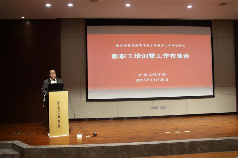 为了更好的迎接本科教学审核评估,加强全院教职工对该项工作的重视,2017年10月20日下午4:00,在学院楼A604召开了《本科教学审核评估教职工培训暨工作布置会》。会议由公司党委书记陈新忠主持,会上,陈书记首先强调了本科审核评估对促进学院内涵建设和人才培养质量的重要意义,并要求全院教师员工以饱满的精神状态,迎接专家进院检查与评估。