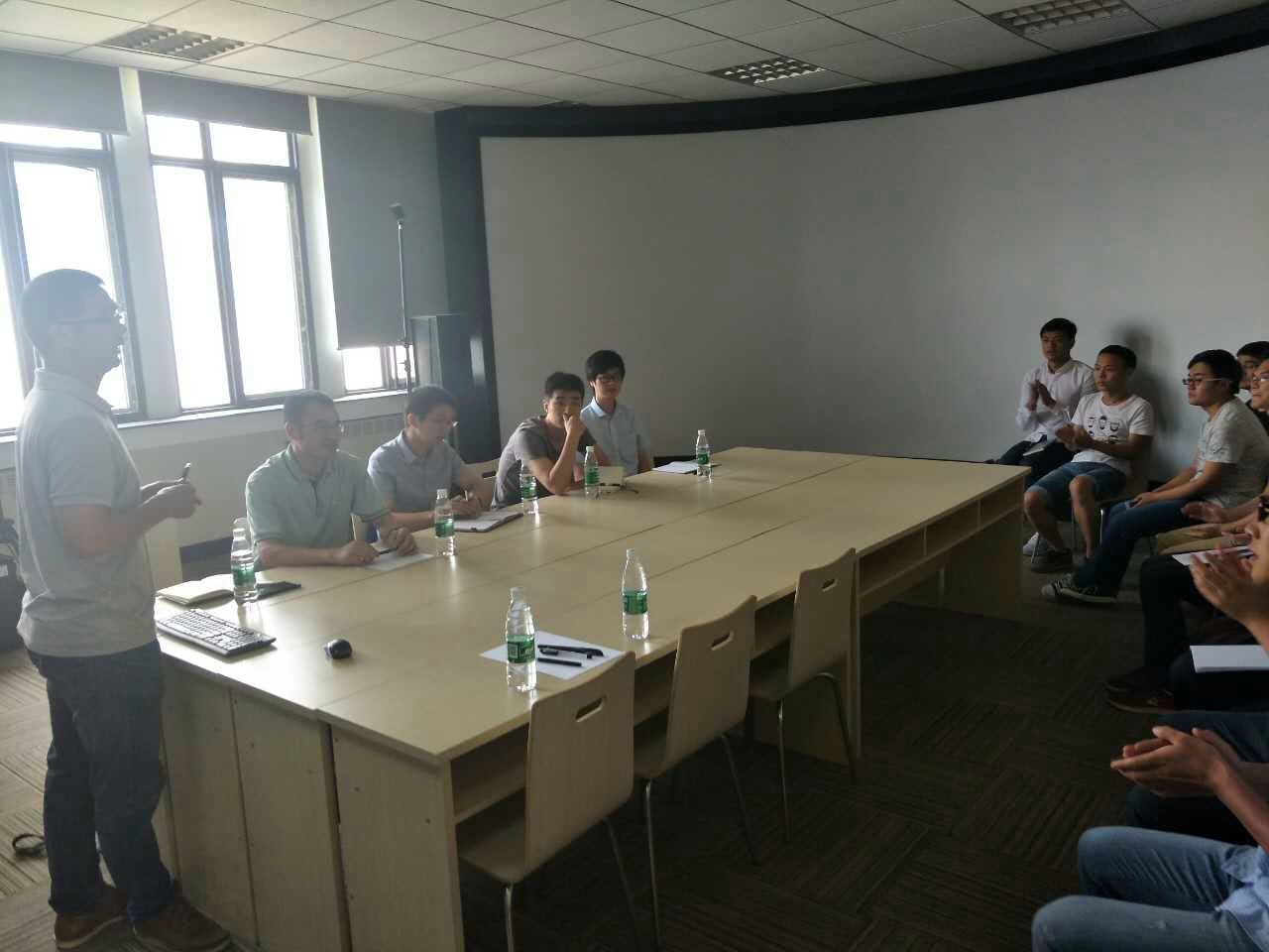 会议开始,南京德朔公司的工程师首先给大家详细介绍了本次暑期实习的内容以及相关的要求,并且鼓励大家充分利用各自的聪明才智在企业提供的平台上尽情展示。在德朔公司的工程师介绍完之后,本科的4组同学针对企业提出的一系列课题分别进行了各自的工作进展汇报。第一组的组长侯学林,他的汇报题目是《DC新能源模型构建与仿真研究》,他针对企业提出的建立仿真模型的要求,和组员一起自学了仿真软件并给出了该项目仿真的具体思路。第二组的组长闾宁,他带来的汇报题目是《PPD生产资源预测及规划系统的设计与实现》,他们小组针对PPD生产资源预测问题查阅了相关文献,学习了有关预测常用的方法,为本次实习做了充分的准备。第三组的组长亓文辉,他带来的汇报题目是《CNC加工中心效率提升》,该小组针对CNC加工中心的效率提升问题展开研究,首先分析总结了当前加工中心效率不高的原因,然后针对这些原因给出了研究该课题的思路和具体步骤。第四组的组长是赵志华,他给大家带来的题目是《QA实验室检验员负荷研究》,他们小组研究的内容更偏重基础工业工程,需要对检验员日常工作的负荷进行详细研究,他们也针对暑期实践课题给出了具体的研究步骤和研究方法。
