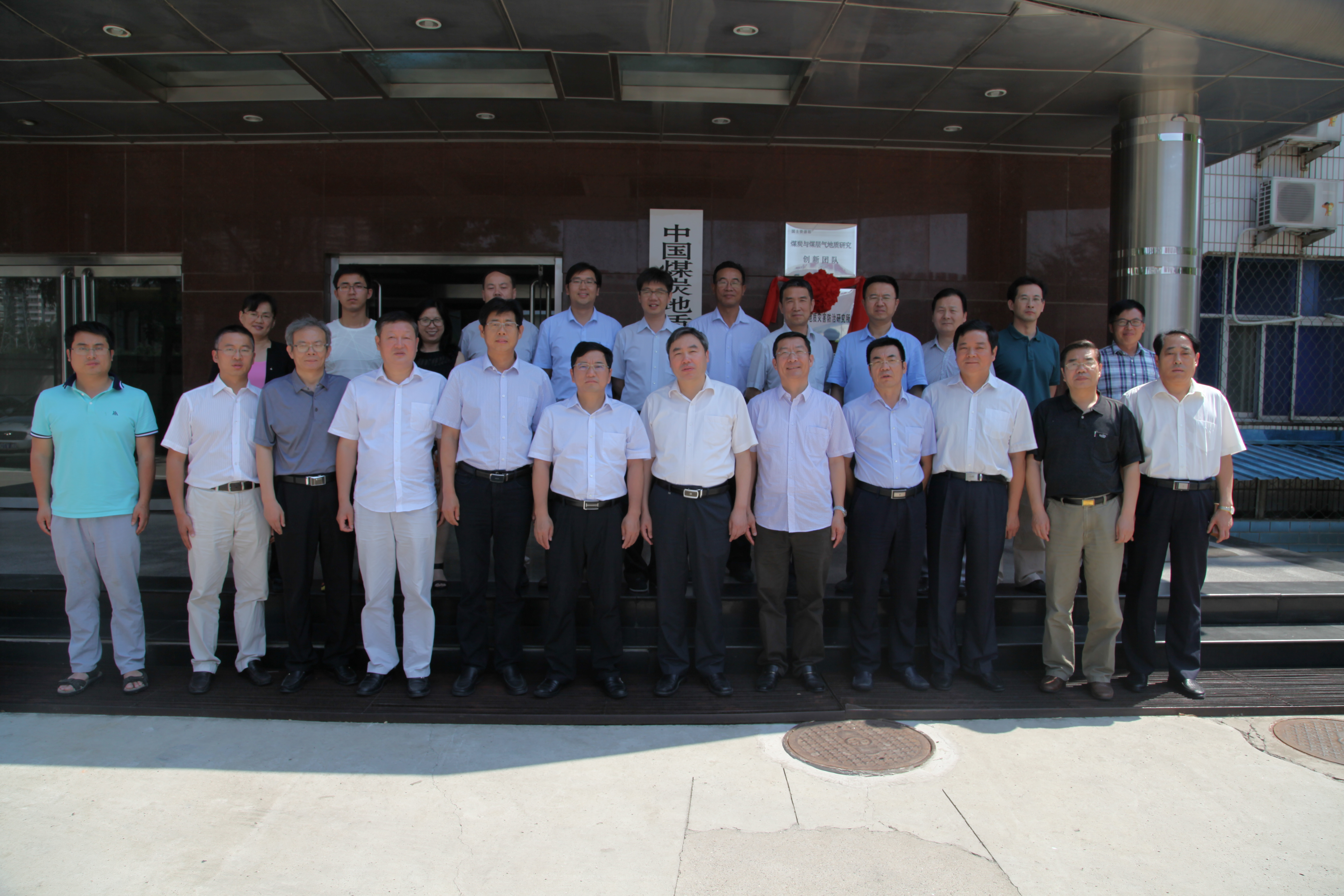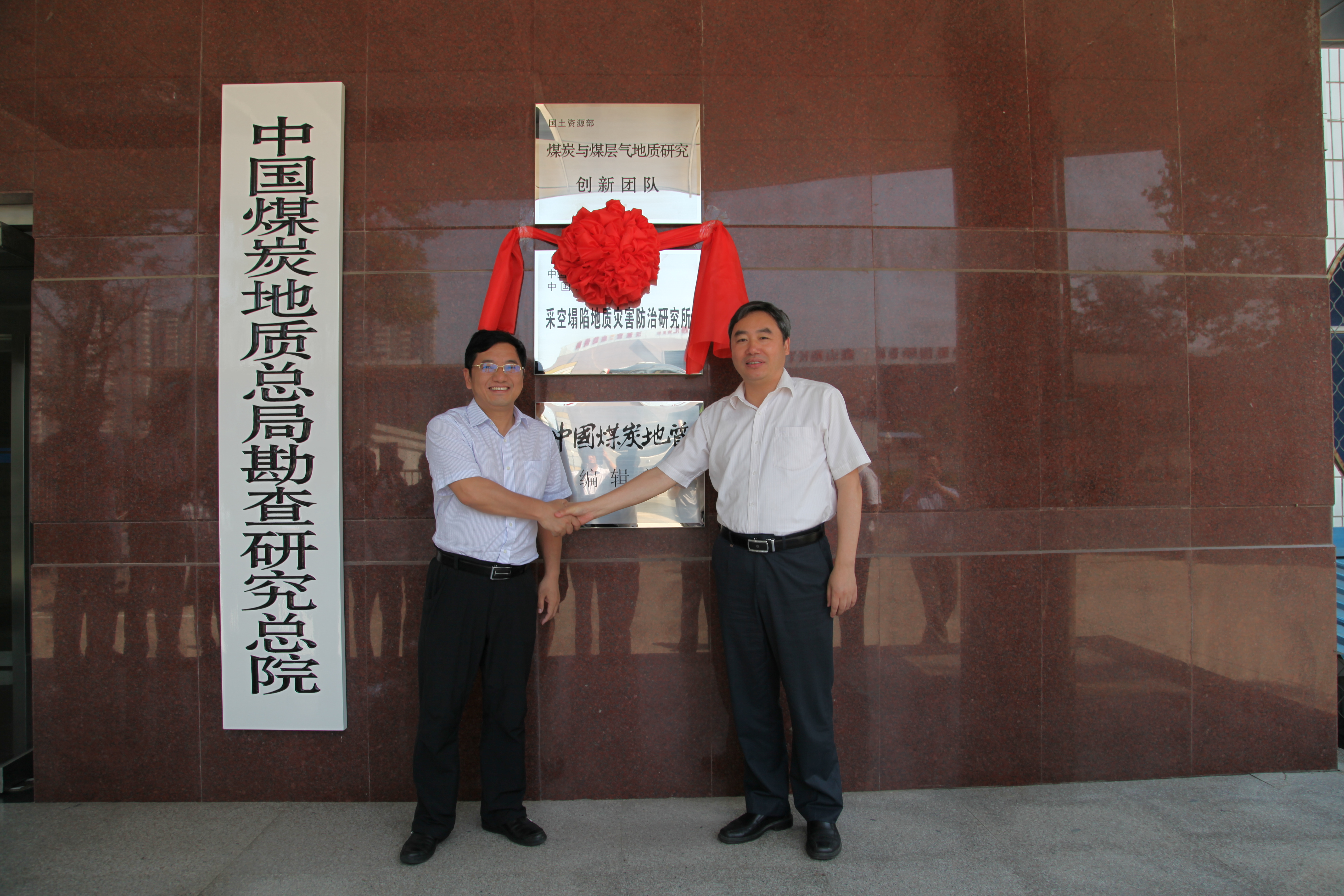 威廉希尔中文网站经理张农(左)与中国煤炭地质研究总局勘查研究总院经理潘树仁(右)为采空塌陷地质灾害防治研究所揭牌