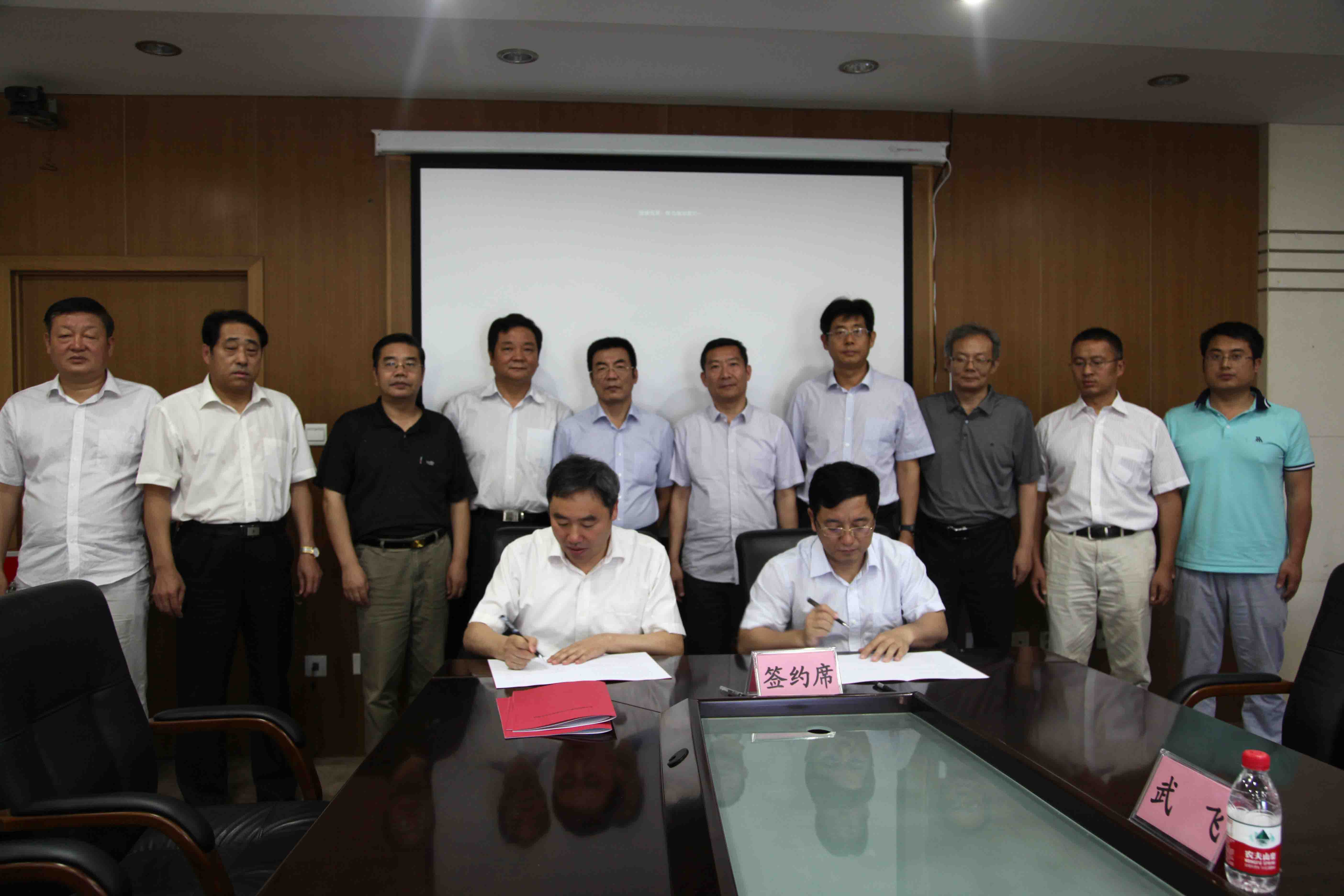张农经理和潘树仁经理代表双方在战略合作协议上签字,并为采空塌陷地质灾害防治研究所揭牌。
