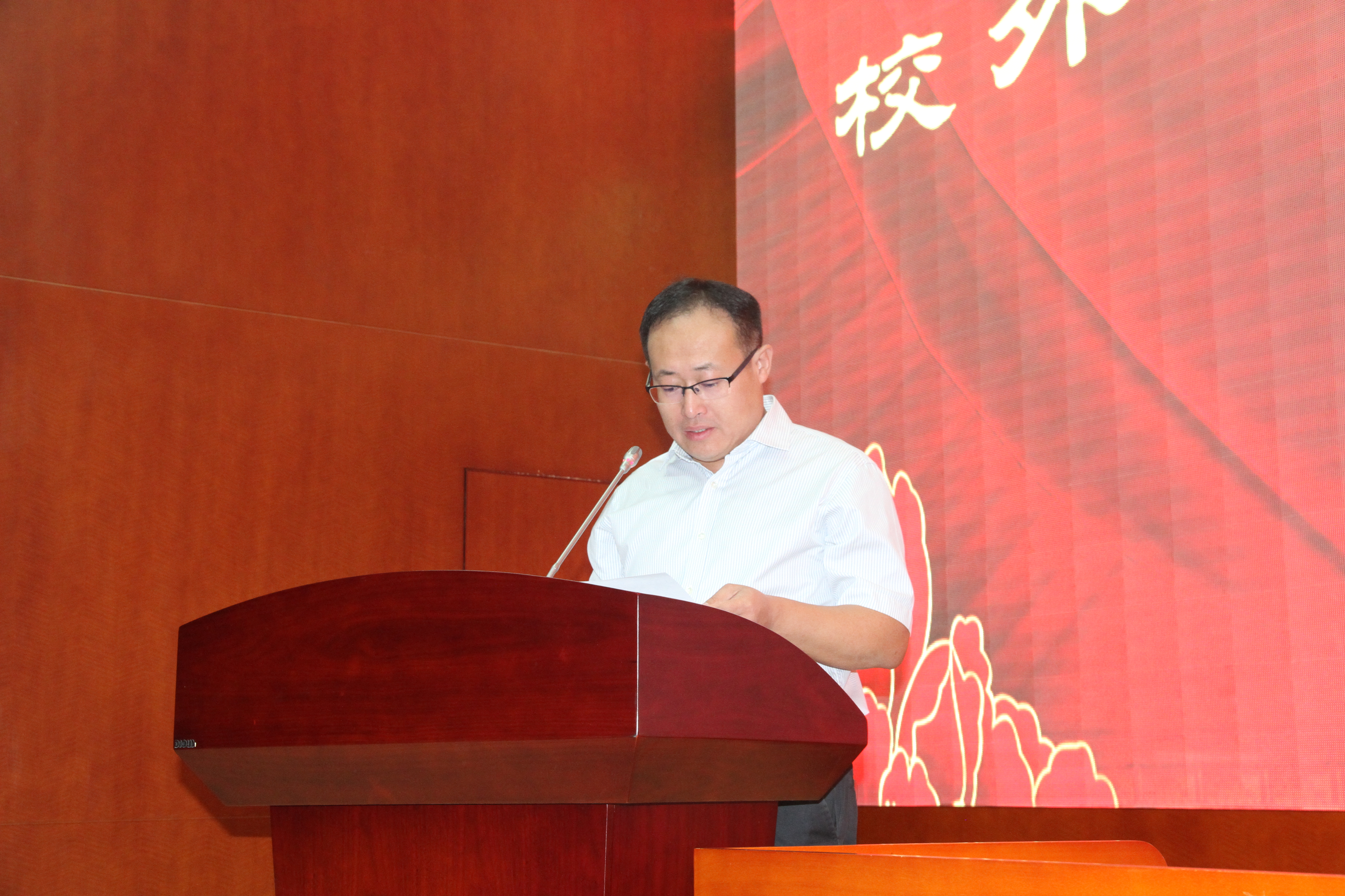 公司党委书记陈新忠宣读了聘用校外实习基地指导老师名单,同时向校外实习基地指导老师代表、小龙潭布沼坝露天矿矿长丁庆方颁发了聘书。