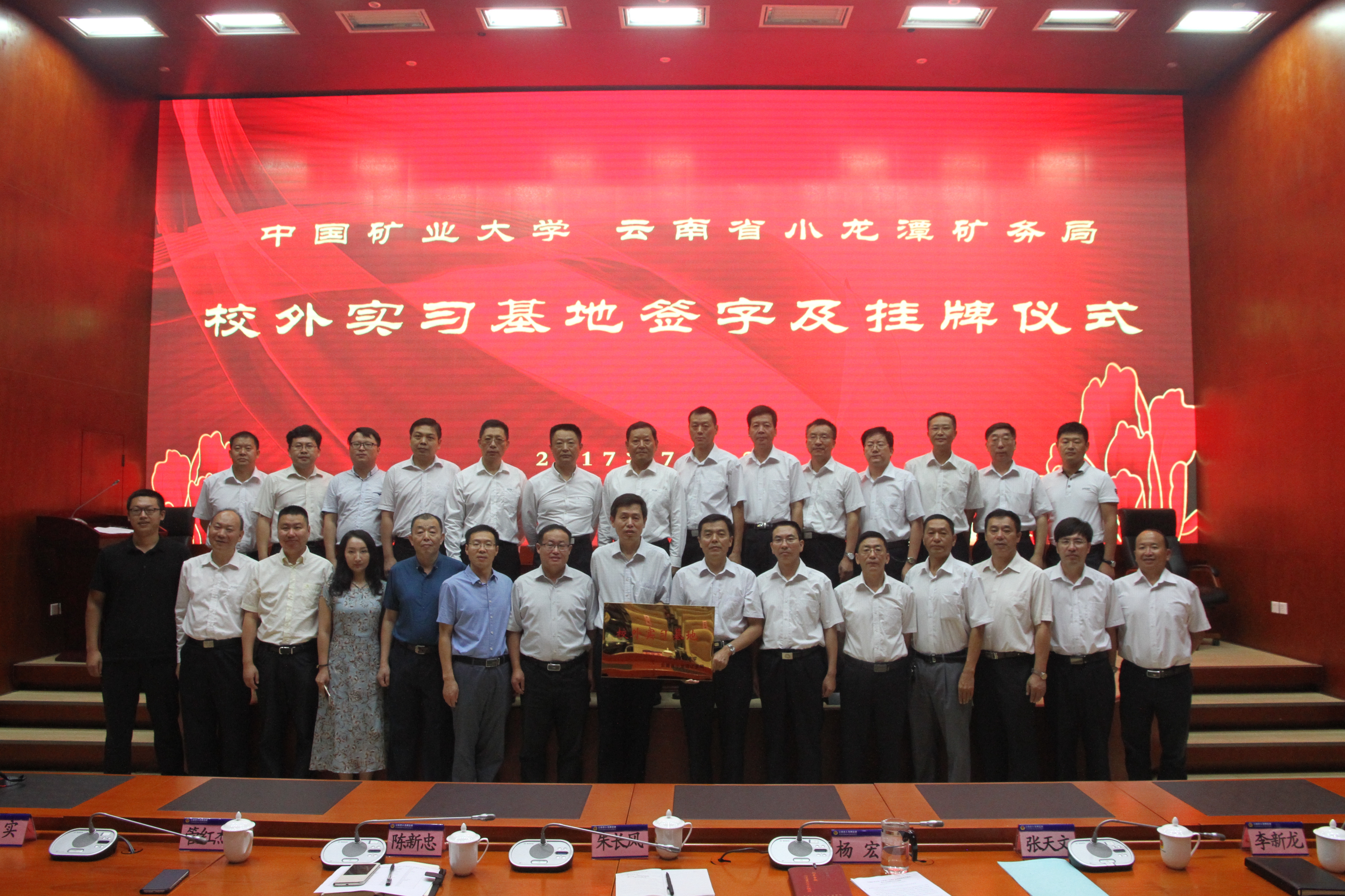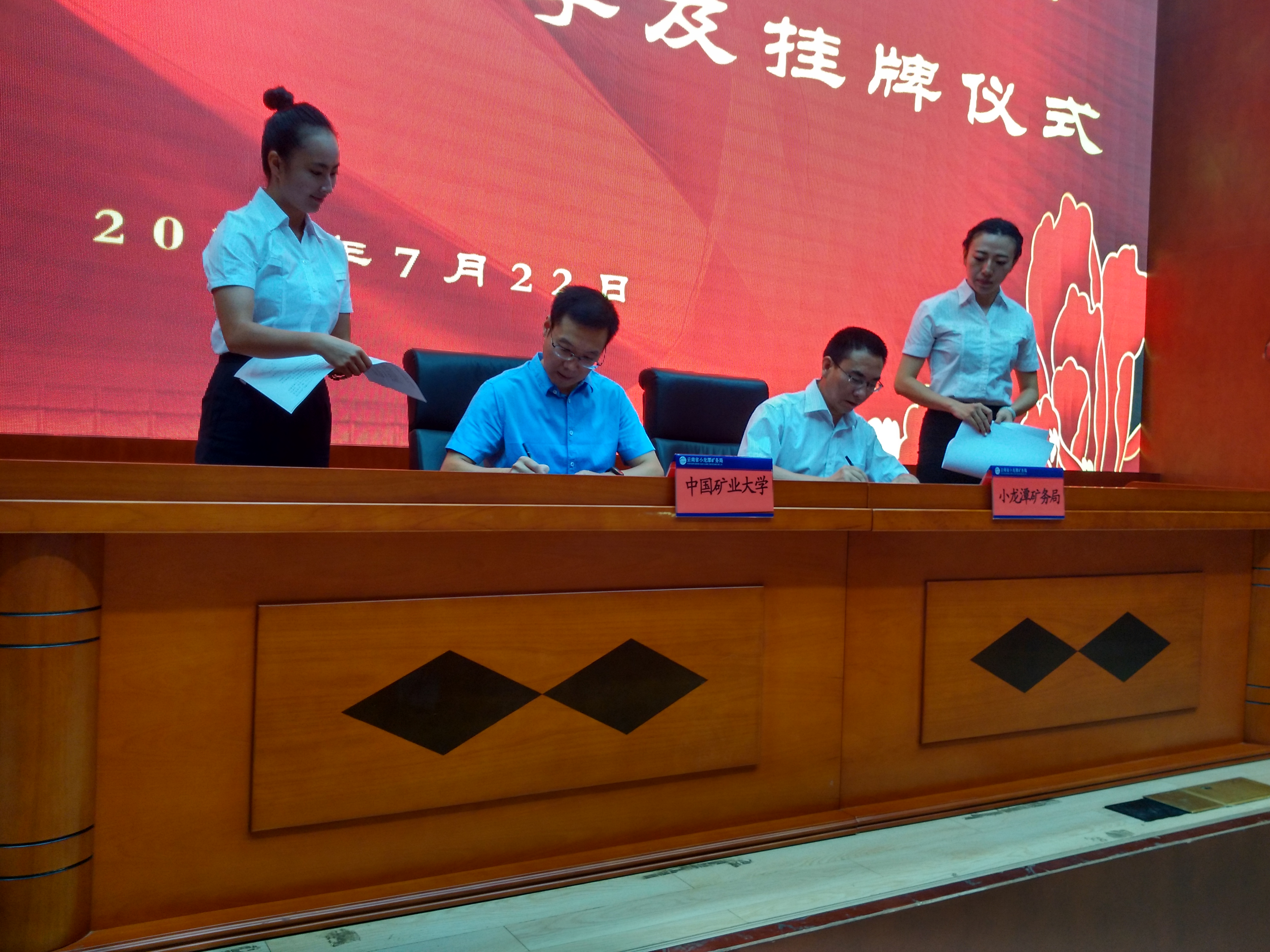 对外合作与发展处朱长风处长和小龙潭矿务局副局长、企业总经理张天文为校外实习基地挂牌。