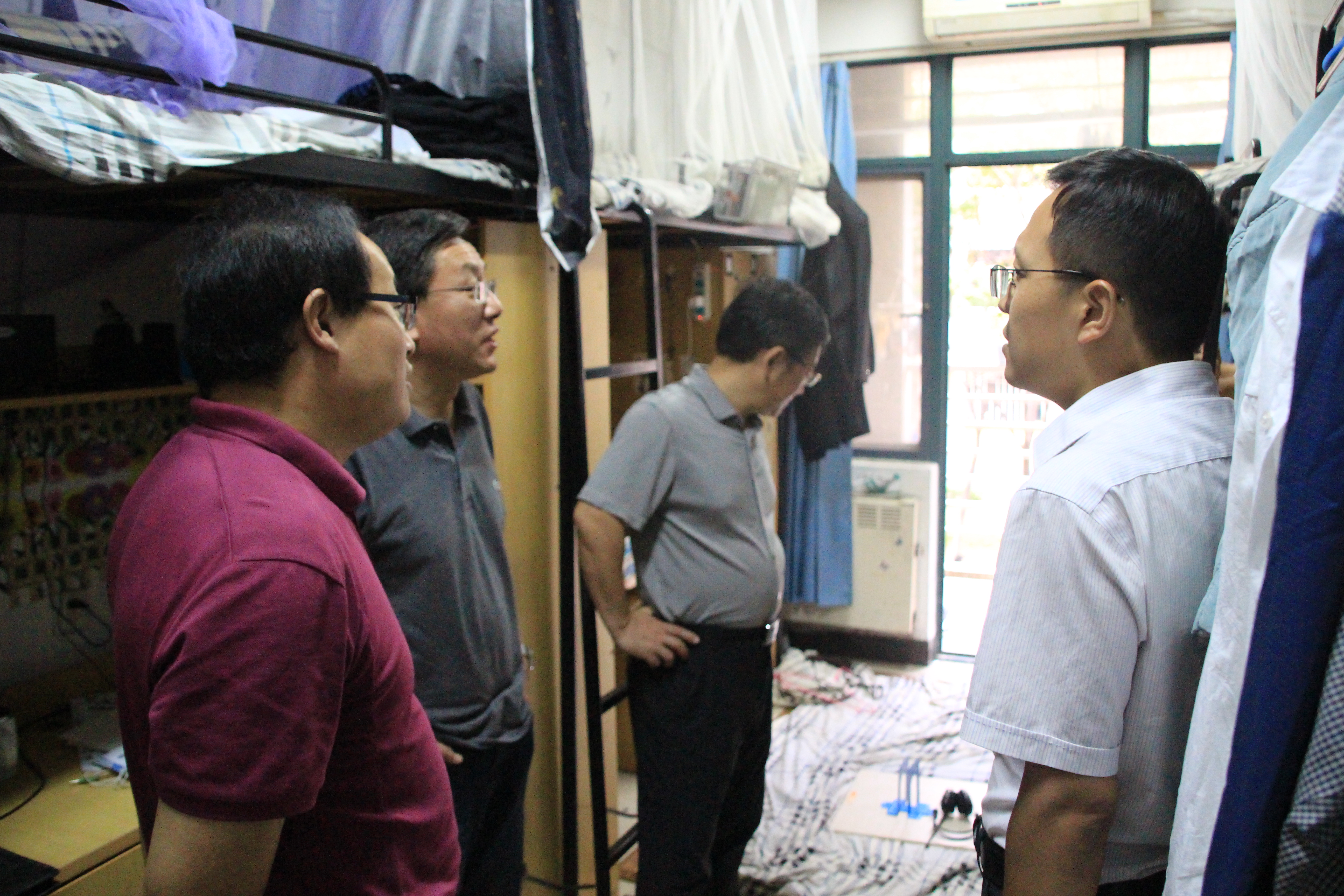 为了更好了解员工宿舍情况,听取毕业生大学四年对寝室生活和宿舍环境的建议。6月19日下午,矿业学院经理张农、党委书记陈新忠、党委副书记畅军亮、科研、研究生副经理李学华、行政副经理王晓琳、国家重点实验室副主任范军、党政办公室主任王君以及辅导员老师走访了毕业生宿舍。