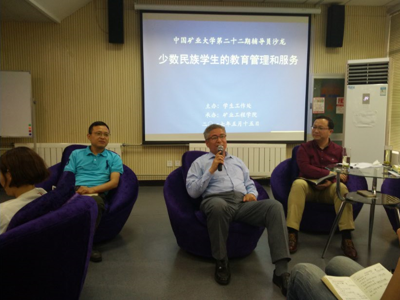 员工处副处长王清主持沙龙,对各类老师参加辅导员沙龙表示欢迎,介绍了吾不力海热·哈斯木等四位新疆内派教师的工作情况。希望辅导员多与吾老师联系,提升本学院少数民族员工教育管理水平。