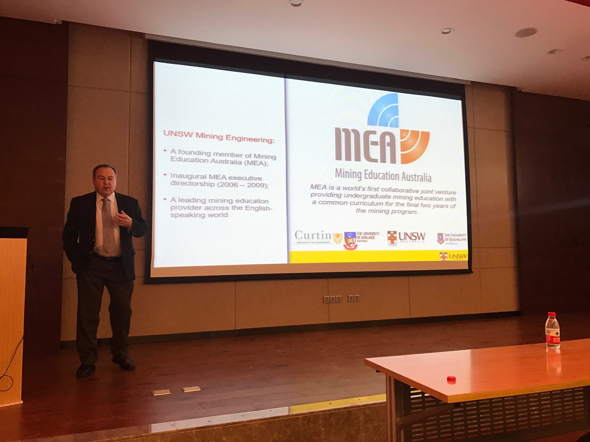 访问期间,Bruce Hebblewhite教授在矿业学院楼A604向矿业学院教师、研究生及本科生作了题目为“Mining Engineering Education: Future international directions and opportunities”的学术报告,Bruce Hebblewhite教授详细介绍了矿业教授协会(Society of Mining Professors)的建立和发展、矿业工程发展的趋势和存在的挑战、QS排名的依据和两校2+2合作办学情况等内容。报告会后,围绕本科生、研究生和博士后在澳学习与工作等热点问题,Paul Hagan经理、Bruce Hebblewhite教授等和与会师生进行了深入交流。访问团一行参观了煤炭资源与安全开采国家重点实验室和矿业工程国家级实验教学示范中心。