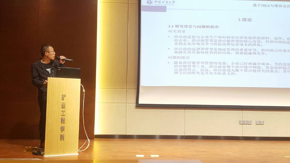 4月27日晚上7:00,由IE学社举办的工业工程系2017年第2期(总第14期)研究生学术交流会于矿业学院A604正式拉开序幕。本次学术交流会是2017年度第二期学术交流会,本次会议共有2名研究生做学术汇报及3名本科生做知识分享,会议邀请到工业工程系的李玉鹏老师担任点评嘉宾。