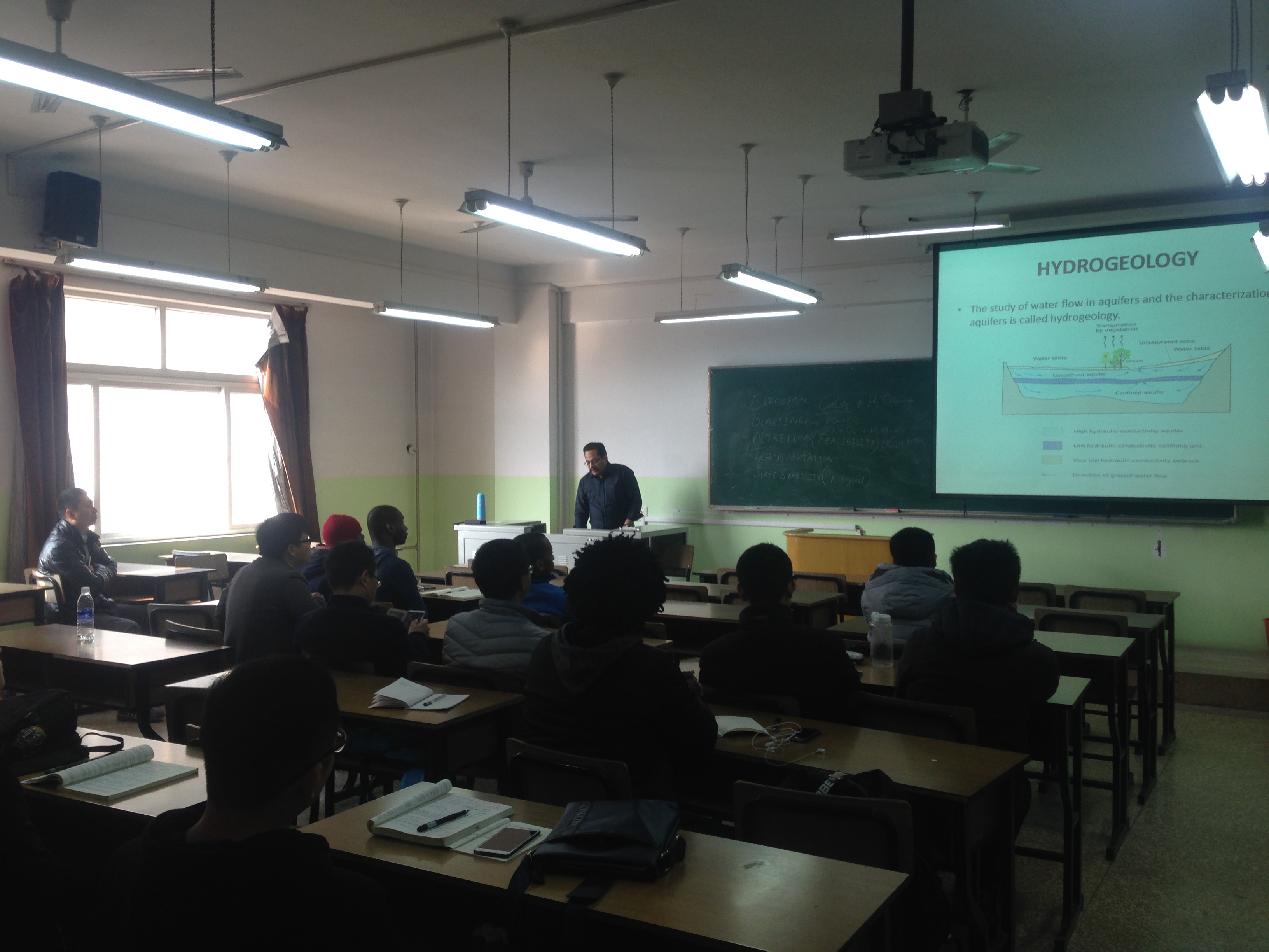 课堂中,周伟教授重点讲了露天矿开采中的土地复垦环节,着重强调了土地复垦,绿色开采的重要性,协调好土地、矿山和环境的关系。来自巴基斯坦的访问学者阿卜杜拉做了“Dewatering of open-pit mines and quarries”的全英文专题汇报,系统的介绍了露天矿中的水资源利用,水灾害治理和对生态的影响等问题,分析比较了中国和巴基斯坦在以上方面的研究和成果的异同。陈树召讲师做了关于“开采工艺”的专题讲座,从宏观上解读了国家在露天开采工程各个环节的政策性导向和期许。课堂休息期间,同学们讨论热烈,就多个实际问题进行了深入的交流和探讨,学术氛围浓厚。