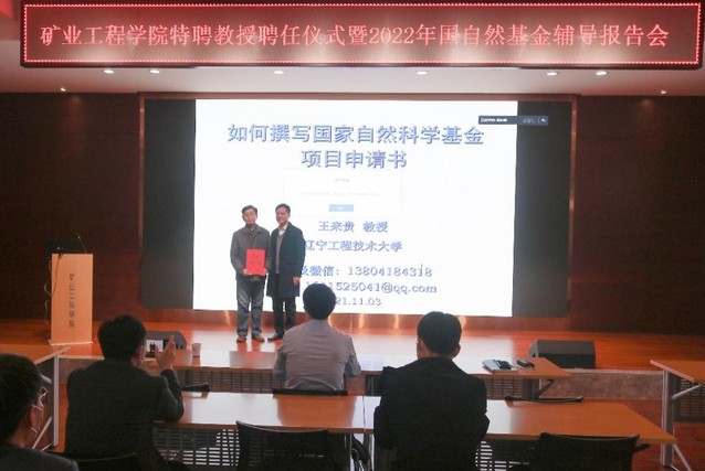 11月3日下午,学院举行特聘教授聘任仪式暨2022年国家自然基金辅导报告会。科研院吴健波副经理为辽宁工程技术大学王来贵教授颁发WilliamHill官网特聘教授聘书,王来贵教授应邀做了“如何撰写国家自然科学基金项目申请书”专题报告。副经理马立强主持会议,并对2022年的基金申报工作部署进行了汇报。学院与煤炭国重共60余名教师分别在A604报告厅、A509会议室参加了报告会。