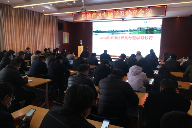 张吉雄经理作了师德师风专题报告,领学了习近平总书记关于教师思想政治和师德师风的重要讲话、国家近年来出台的师德师风建设制度文件及新时代高校教师职业行为十项准则,对师德师风建设的内涵进行了阐释,要求大家认真学习领会习近平总书记的讲话精神,贯彻落实教育部“师德专题教育总结交流暨师德师风建设重点工作落实推进会”会议精神,努力做到四个“统一”:坚持教书和育人相统一、坚持言传和身教相统一、坚持潜心问道和关注社会相统一、坚持学术自由和学术规范相统一。之后,他结合教育部公布的违反教师职业行为十项准则典型案例,对全院教职工做了警示教育。他强调,大家要牢固树立底线意识,不忘“立德树人”初心,牢记“为党育人、为国育才”使命,不断涵养高尚师德,以德施教、以德育德,做党和人民满意的“大先生”。最后,他介绍了一年来学校、学院与煤炭国重师德师风建设的工作进展情况。