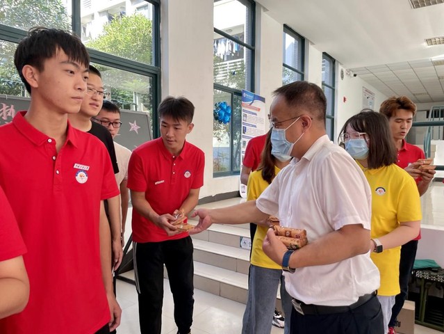 随后,院领导为新生分发了精心准备的月饼,在场的同学对学院的慰问表示感谢。同时,学院各班班主任分别组织开展了形式多样的中秋节祝福活动,为员工送上了月饼、水果等。
