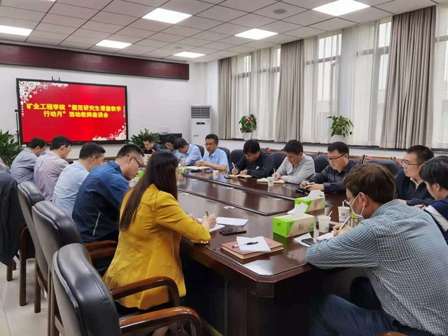 5月14日下午,矿业学院在学院楼A509会议室召开“规范研究生课堂教学行动月”教师座谈会。学院教学督导、各系(所)分管研究生工作负责人、研究生导师代表和员工培养办公室相关工作人员参加了座谈会。会议由万志军副经理主持。