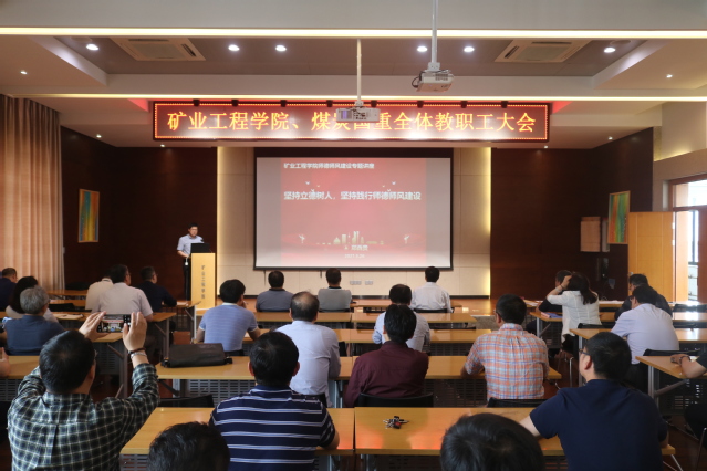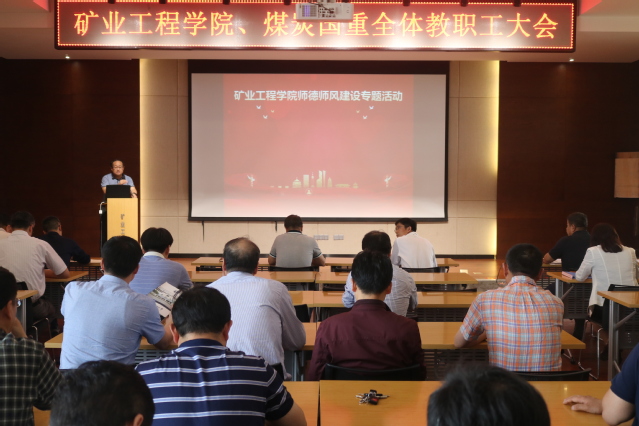 5月26日下午,英国威廉希尔公司、煤炭国重在矿业楼学术报告厅召开全体教职工大会暨师德师风建设专题讲座。矿业学院、煤炭国重领导班子成员出席会议。会议由党委书记陈新忠主持。