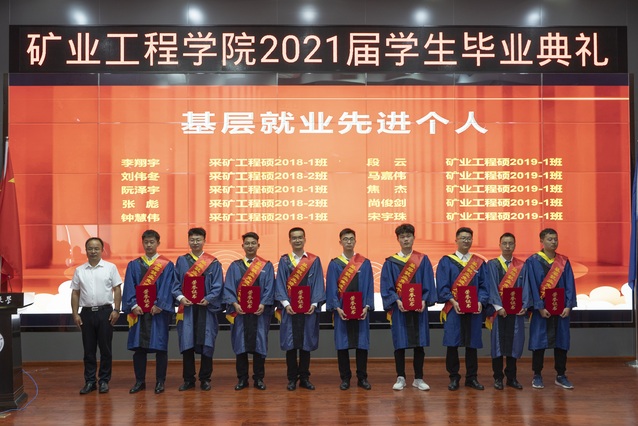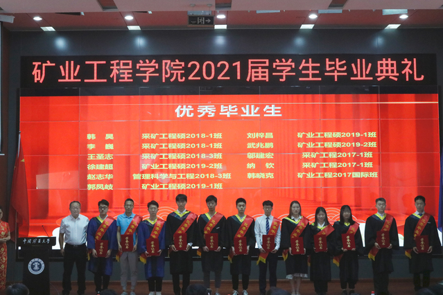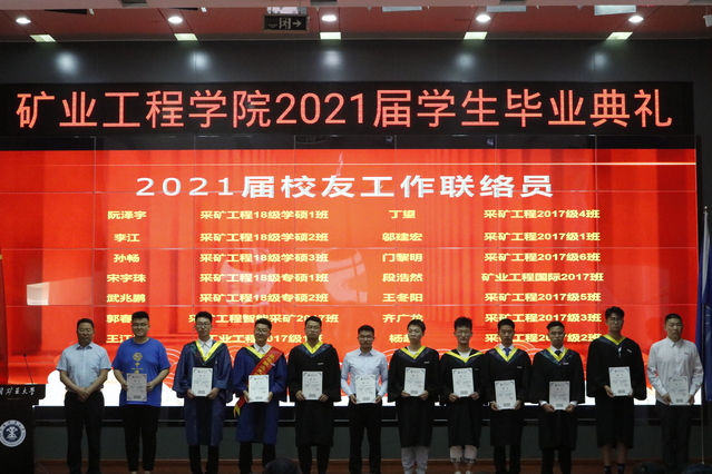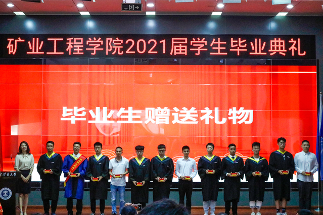 毕业典礼上,学院对学院获得校优秀毕业生、基层就业先进个人进行了表彰,为首届智能采矿班、矿业国际班颁发了荣誉证书,进行了矿业学院员工联络员聘任,为每一位毕业生颁赠员工徽章及纪念礼物,为民族预科班员工代表颁发了结业证书。
