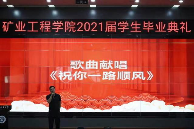 “当你背上行囊卸下那份荣耀,我只能让眼泪留在心底,面带着微微笑用力的挥挥手,祝你一路顺风……”典礼结束后,毕业班辅导员赵云龙老师深情演唱《祝你一路顺风》,引起了毕业生的阵阵掌声。毕业生代表也为同学们送上了一首《送别》,表达了依依不舍之情。