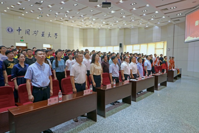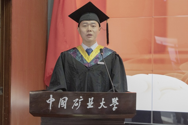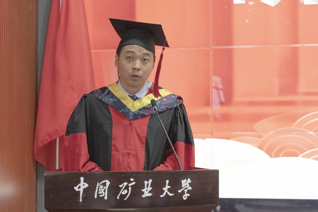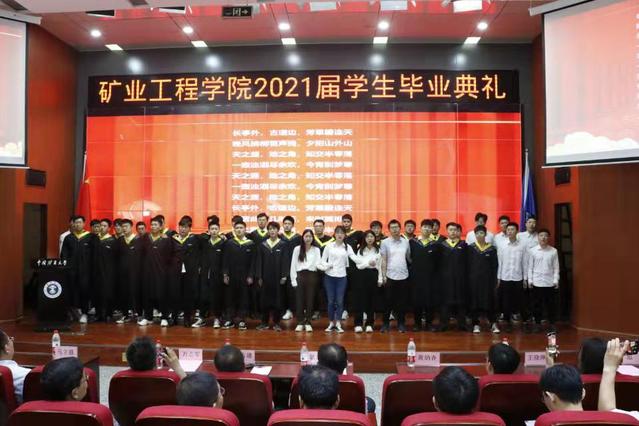 典礼在庄严的国歌中拉开序幕。张吉雄经理向顺利完成学业的2021届全体毕业生表示衷心的祝贺。他说,从初入校园到今天的顺利毕业,数年匆匆而过,你们用努力、拼搏书写着在矿大期间的人生答卷,各位同学以实际行动和优异成绩塑造了更好的自己,为未来发展奠定了坚实的根基。张吉雄经理还给同学们送上了温馨的祝福,并提出殷切的希望。一是希望同学们坚守理想,不忘初心,永守本真。坚守理想,才能走得更远。不忘初心,才能走得稳健。只有这样,方能穿破迷雾、克服阻碍,以努力与拼搏谱就青春的奋斗华章。二是希望同学们爱国报国,勇于担当,甘于奉献。他以“井下教授”为例鼓励大家,要努力奋斗、勇于担当,做一个热爱祖国、甘于奉献的奋斗者,切实肩负起时代重任,在真刀真枪的实干中成就一番事业。三是希望同学们坚持好学力行,未来投身实践,尽快成长成才。他表示,在复杂的国际形势下,我们必须瞄准“卡脖子”的关键核心技术,用科学赢得发展的先机;要牢固树立终身学习的理念,保持好学力行的优良传统,在终身学习中追求卓越,止于至善;同学们走向新的阶段之后,要认真踏实地做好每一件工作,圆满完成每一项任务,从实践中锤炼过硬本领,以真才实学服务于人民、贡献于国家。
