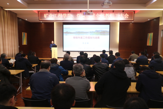 经理张吉雄从学院团队建设工作、团队队伍建设、科技创新服务、人才培养工作、国际合作与交流、管理服务工作共六个方面总结了2020年度工作成效,并通报了2021年度工作规划与近期工作进展。2020年学院坚持疫情防控和事业发展两手抓两不误,围绕双一流周期考核、第五轮学科评估、资源与环境博士专业学位申报、学科国际影响力提升等持续推进团队建设工作;引进团队14名,其中重点研发项目首席科学家1名,讲师6名,团队博士后7名,聘用已退休正高级岗位教师王作棠教授;获国家或省部级人才称号9人次;获批国家级科研项目10项,其中基金重点1项、国家优青项目1项;到账纯科研经费1.01亿元,新增合同额2.8亿元;围绕“五金”工程做好人才培养工作,获批国家一流课程2门,增设“新能源科学与工程”本科专业,聘用校外金牌兼职导师35名,签订校外金牌基地8个。2021年学院工作主题是“提升与发展”,要进一步凝练团队建设方向,强本拓新,以“需求+质量”的原则引进团队,并向大团队、新方向引进团队倾斜,扎实做好青年教师培养工作,做到人人入团队、人人有方向,通过强化基础研究和实质性院企合作开展科技创新服务,持续推进“五金”工程强化人才培养,依托111引智基地建设进一步加大国际合作交流力度,打造精细化管理服务模式,提升办公效率和教职工工作幸福感。最后他强调,矿业属大家、发展靠大家,面对“碳中和”“碳达峰”新形势,我们要坚定矿业自信,积极主动作为,以饱满的激情、昂扬的斗志,朝着建设能源资源特色世界一流大学的奋斗目标不懈努力。