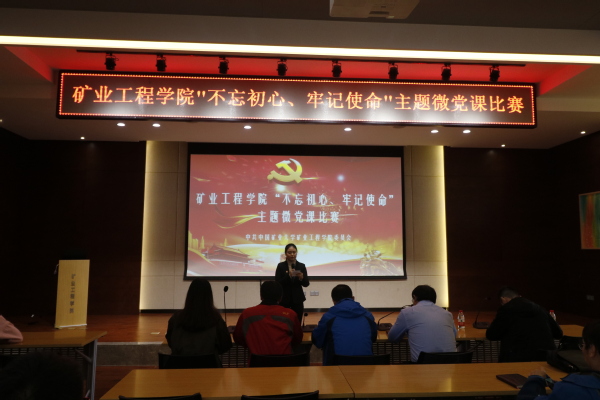 11月16日下午,矿业学院在矿业楼报告厅举行“不忘初心、牢记使命”主题微党课比赛。公司党委书记陈新忠、公司党委副书记畅军亮,公司党委委员任海兵老师、教工第五党支部书记舒继森老师和各年级辅导员担任比赛评委。
