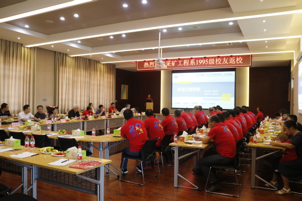 矿业学院经理张吉雄代表学院致欢迎辞,向重返母校的95级员工表示热烈的欢迎。他从学院概况、团队队伍、人才培养、团队建设、科学研究、学术交流、面临困惑七个方面对学院近年的发展及现状做了介绍。原采矿工程系95级沈荣喜同学汇报了本次活动的筹备情况。江苏师范大学副董事长、原矿业学院经理张农,矿业公司党委书记陈新忠,任课教师汪理全、窦林名、杜计平,辅导员徐黎华先后发言,充分肯定了同学们20年来取得的巨大事业成功,勉励同学们勿忘师恩,勿忘同学情,激励员工们积极进取、努力工作、为祖国建设贡献自己的力量。