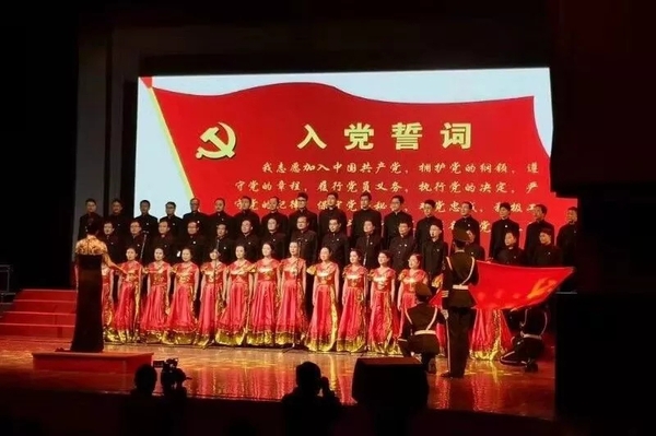 舞台上,学院教职工通过神圣、庄严、经典的誓词配上宏伟、激昂、坚定的旋律,让誓词插上音乐的翅膀飞进党员们的心房,唱出了全体党员的共同信念、庄严承诺、行为准则和磅礴力量。在全体成员的共同努力之下,矿业学院取得历史最好成绩。