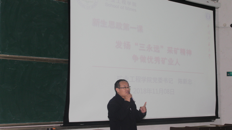 陈新忠还用自己的亲身经历与人生感悟来启迪同学们要正确认识大学,要把个人理想和学习目标相结合,分阶段科学、合理的做好自己的老员工涯规划,陈书记借用党的十九大报告中的“不忘初心,方得始终”和“青年兴则国家兴,青年强则国家强”告诉同学们什么是初心,如何做新时代的有为青年,勉励同学们要发扬采矿精神,做好规划,争当优秀的矿业人,利用好世界一流学科平台,把个人价值实现融入中国梦的实现这一伟大事业中去!