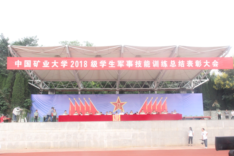 大会在庄严的国歌声中正式拉开帷幕,伴随着雄壮的阅兵分列式进行曲,各方阵排列整齐,以响亮的口号和豪迈的步伐,接受主席台领导的检阅,矿业学院作为领头的第一方阵,在院旗的引导下,他们意气风发,精神抖擞,口号洪亮,整齐的队伍、一致的步伐赢得了主席台领导的阵阵掌声,充分展现了矿业学子良好的精神风貌。分列式结束后,在校旗引领下,各学院院旗围绕校旗旌旗招展,随后2018级军训学员进行了匕首操、捕俘拳、刺杀操科目表演,承训教官表演了实战格斗技术和进攻基础战术,对简易引号指挥、进攻队形展开、战术基础动作、开辟雷区通道、破坏敌障碍工事的内容进行了演示,标准的动作、磅礴的气势赢得了全场热烈的掌声。