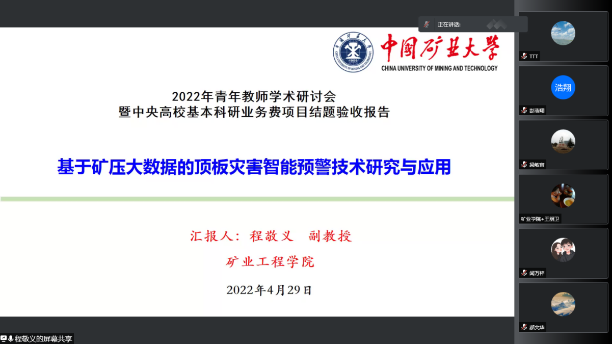 4月29日,英国威廉希尔公司组织召开了2022年青年教师学术研讨会,暨中央高校基本科研业务费项目结题验收会。学院共邀请了7名专家对青年教师进行学术指导,其中2名校外专家是东北大学朱万成教授、山西能源学院经理冯国瑞教授,5名院内专家是屠世浩教授、窦林名教授、刘长友教授、李桂臣教授和马丹教授。共有160余名师生参加了在线会议,会议由马立强副经理主持。