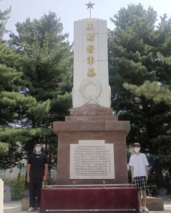踏入烈士林园,历史的厚重感扑面而来,陵园中肃穆悲壮的气氛使实践团成员深受触动。首先,映入眼帘的是一面黑色的墙壁,上面写着“烈士永生”四个金色的大字。继续深入,就来到了陵园的中心区域——朱瑞将军墓。将军墓周围青松挺拔,郁郁葱葱,宏伟壮观,松柏的挺拔与松翠,就好像朱瑞将军不朽的形象一样,昂然屹立。