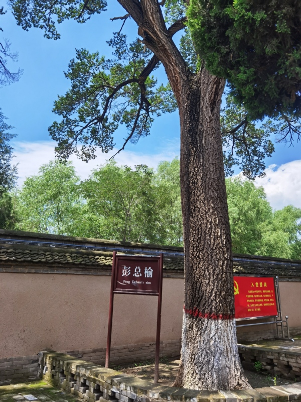 从远处眺望,山西多丘陵沟壑,砖壁村所处的位置更是四面环山。很难想象当时的领导人徒步走到这里有多不容易。那棵彭总亲手种下的彭总榆,现已亭亭如盖,隐隐绰绰的伸出了墙头。旺盛蓬勃的长势正如同当今迈向民族复兴的中国,昂首挺胸,意气风发!