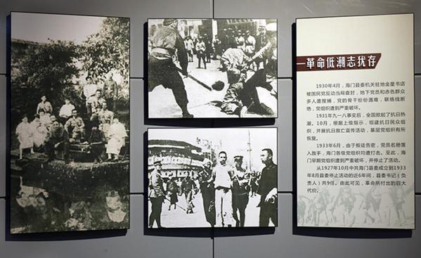 陵园中,革命烈士纪念碑碑身为红色花岗岩旗帜两面,象征着过去和未来先烈创造的英勇事迹两面旗帜相连处犹如一个敞开的大门,象征着江海门户黑色花岗岩象征着烈士们不朽的英灵安卧在海门的土地上白色浮雕花夹象征着海门人民对先烈们深切的缅怀之情。