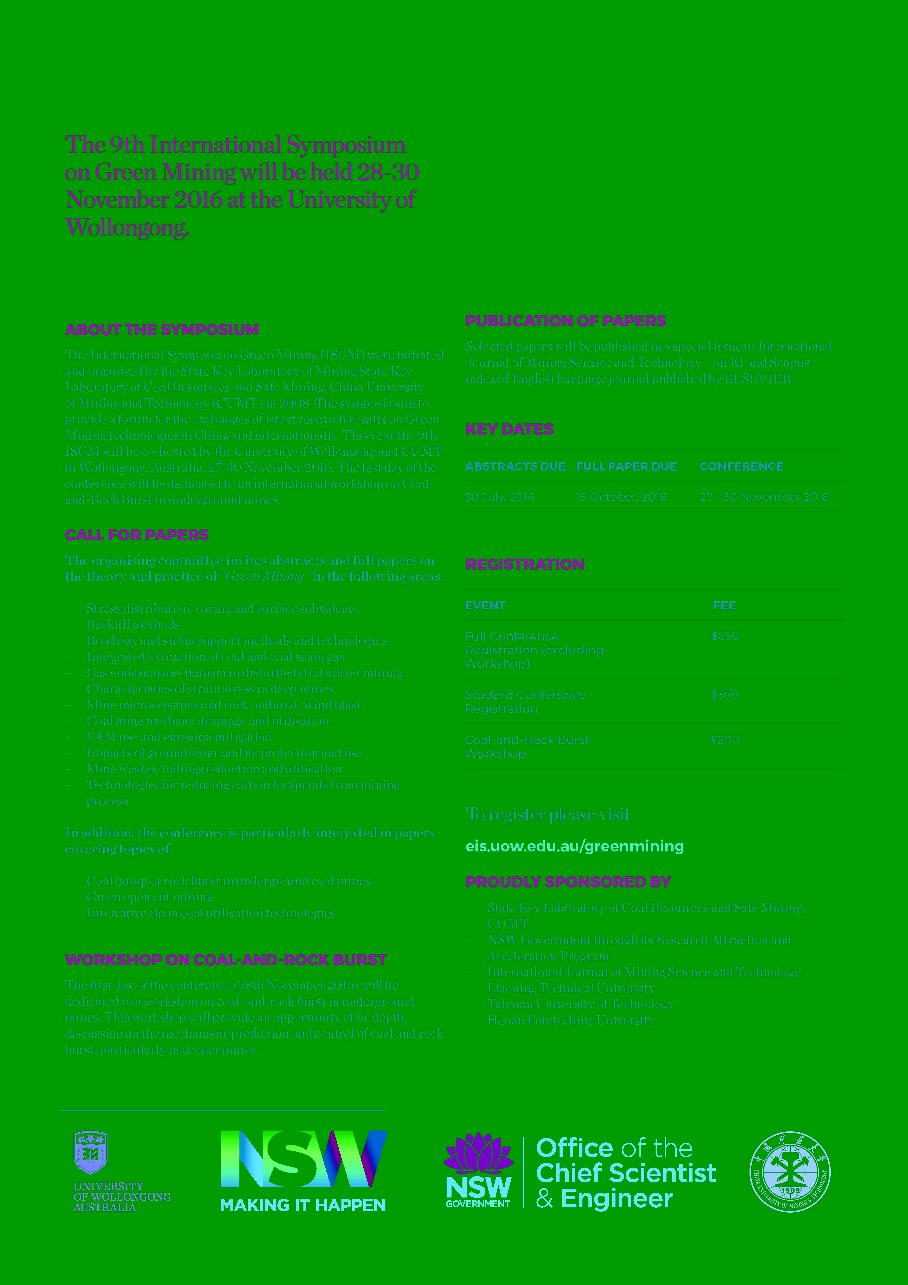 学术会议 首页 - 学科动态 - 学术会议 - 正文 学术会议:第九届绿色开采理论与实践国际研讨会 作者:系统管理员浏览:时间:2016-06-06 新闻来源:英国威廉希尔公司 摄影: 责任编辑: 审核: