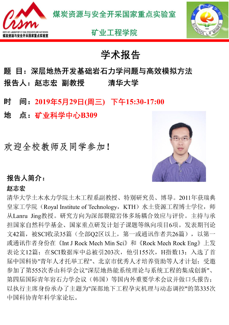 学术会议 首页 - 学科动态 - 学术会议 - 正文 学术报告:深层地热开发基础岩石力学问题与高效模拟方法 作者:董成亮浏览:时间:2019-05-28 新闻来源:英国威廉希尔公司 摄影: 责任编辑: 审核: