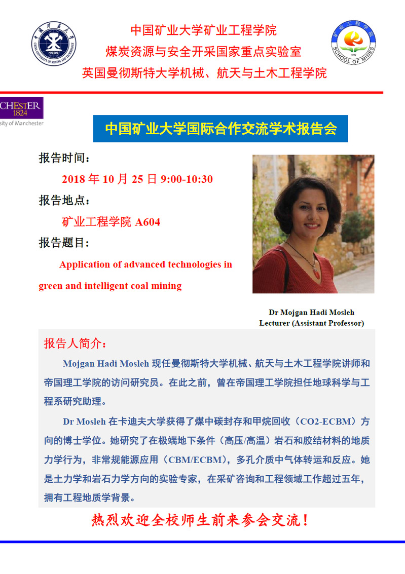 学术会议 首页 - 学科动态 - 学术会议 - 正文 学术报告:Application of advanced technologies in green and intelligent coal mining 作者:董成亮浏览:时间:2018-10-22 新闻来源:英国威廉希尔公司 摄影: 责任编辑: 审核: