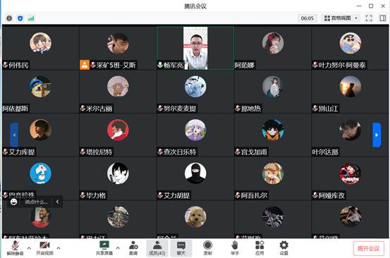 在答疑环节中,畅处长讲到,因疫情防控需要,公司预科生全部暂缓报道,学校领导、老师们自始至终都在同学们的学习和生活,并嘱咐同学们要严格遵守当地疫情防控管理措施,在居家期间做到认真学习、孝敬长辈、谨防诈骗,按照学校要求有序返校。他表示,老师们都很期待疫情过后,能与同学们在美丽的矿大南湖校区相聚,并祝愿同学们来到矿大能收获更好的自己,创造更光明的未来。