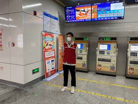 交通运输系莫祥伦、金晓红老师带领2019级全体员工前往徐州地铁1号线、2号线换乘点彭城广场站开展志愿活动。员工志愿者们身穿红色马甲分别在自动售票机、电梯口、进出站口等多个客流量较集中的点位进行志愿服务,引导乘客有序排队、保持安全距离,倡导文明乘车,面对乘客积极热情,为乘客提供路线引导、咨询帮助,与乘客一起维护安全、正点、整洁、舒心的地铁乘车环境,提高乘车整体满意度。