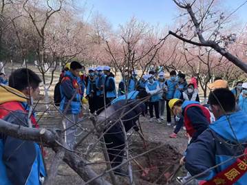 上午9时,志愿者们在金龙山指定地点集合,当地的工人教授大家植树的技巧,志愿者们认真听讲,积极参与。随后志愿者们三人一组,每组分得一颗树苗、三把铲子,开始公益植树活动,志愿者们有序分工,协调合作,完成了预定的目标,并收获了当地工人的赞扬。最后,志愿者们在新种植的树苗前合影留念。